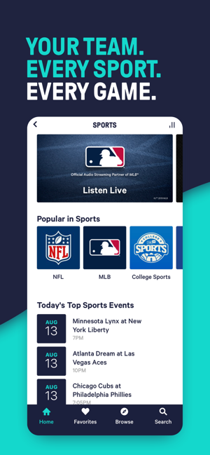 職場で、自宅で、ジムでも外出中にも。NFL、NBA、NHLの全試合の生中継とオンデマンド放送が聴けます。また、スポーツトークも、どこにいても楽しめます。