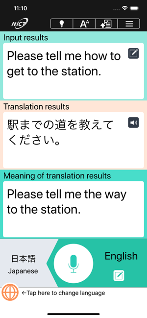 While VoiceTra can be used as a dictionary to look up words, it is recommended to input sentences as it interprets the meaning from the context to output the translation results.