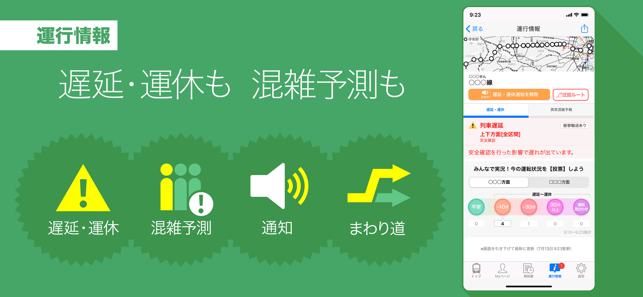 ・最新の鉄道運行状況をお知らせします(遅延、運休、運転見合わせ、運転変更[直通乗り入れや急行の運転中止など])。運転再開も確認できます。