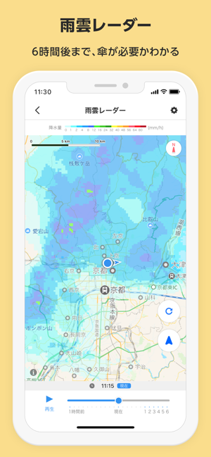 ■「雨雲レーダー」で、最大6時間先までの雨雲の動きがわかる
