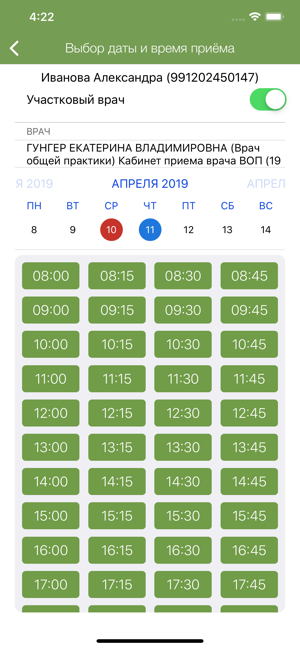 Вы можете записывать себя или членов семьи на прием к участковому врачу или узкому специалисту, указав повод посещения и выбрав удобное время из предложенных графиков. Также, вы можете вызвать врача для себя или своих членов семьи.
