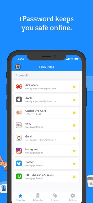 1Password remembers all your passwords for you, and keeps them safe and secure behind the one password that only you know.