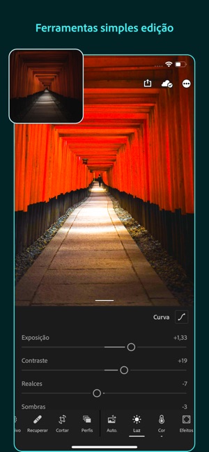 • EDIÇÃO DE RAW: Importe fotos raw de sua câmera DSLR ou mirrorless para o seu celular, permitindo editá-las em qualquer lugar