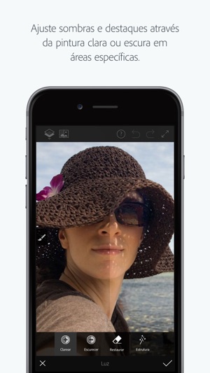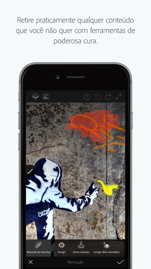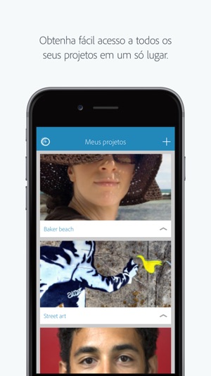 O Adobe Photoshop Fix permite retoques fáceis e poderosos e restauração das imagens no iPad e no iPhone. Corrija, suavize, distorça, ilumine e faça outras edições e ajustes para o look exato que você procura. Acesse fotos editadas em outros aplicativos móveis ou de desktop da Adobe assinando o Adobe Creative Cloud. Faça outros refinamentos ou use-os em outros projetos criativos, tudo isso através do Adobe CreativeSync.