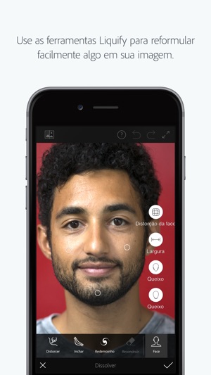 o Dissolver — Empurre, puxe, gire, dilate ou mude a forme de qualquer área para criar efeitos sutis ou drásticos.