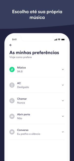 Também é possível personalizar a sua viagem. Na app da Cabify, selecione que música prefere, se quer que o motorista abra a porta ou não ou se deseja que o ar condicionado esteja ligado. Tudo para que seja mais confortável mover-se pela cidade.