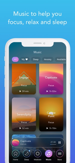 * Music: Exclusive music engineered to help you focus, relax or sleep