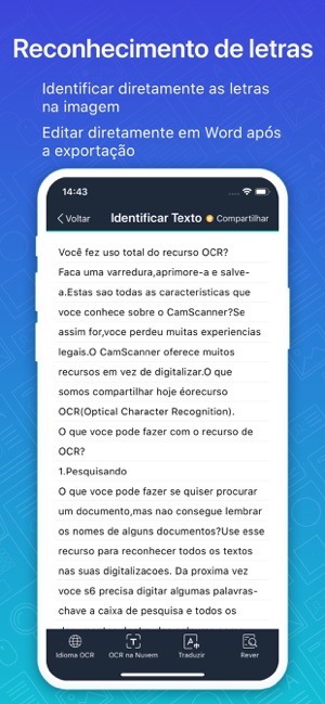 O recurso de OCR reconhece textos existentes em imagens presentes nos documentos e extrai-os para pesquisas, edições ou partilhas posteriores. (Premium)
