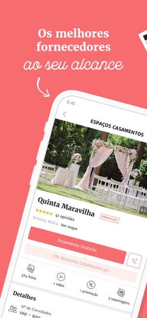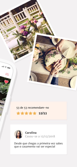 • Casamentos reais e opiniões: Milhares de reportagens de casamentos de casais que depois do “sim, quero!” partilham a sua experiência e as suas recomendações sobre os fornecedores