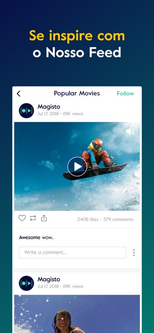 Instale o Magisto Video Editor & Movie Maker agora mesmo e crie vídeos incríveis em minutos, perfeitos para compartilhar nas redes sociais. Junte-se a mais de 100 milhões de pessoas que já instalaram o aplicativo Magisto, versão móvel e web, para criação e edição de vídeos.