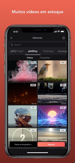 Filmagens de arquivo na aplicação, incluindo vídeos de ecrã verde e sobreposições!