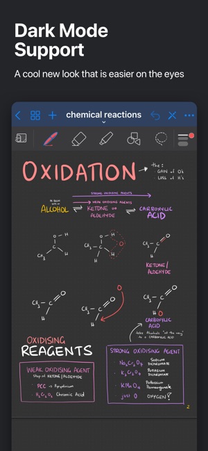 Activating Dark Mode in the control center will give GoodNotes a cool new look that is easier on the eyes. We also introduced a new set of dark paper templates to GoodNotes that you can choose from the template library when creating a new notebook, adding pages to existing documents, or changing the paper template of the current page. Existing background colors of pages won't change automatically because the color is static.
