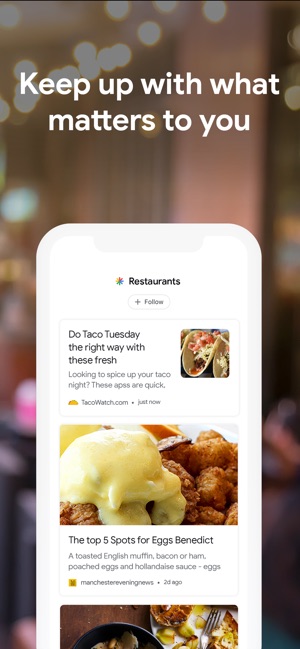 A aplicação Google mantém-no atualizado acerca de assuntos do seu interesse. Encontre respostas rápidas, explore os seus interesses e mantenha-se atualizado com o Discover. Quanto mais utilizar a aplicação Google, melhor esta fica.