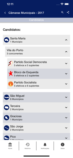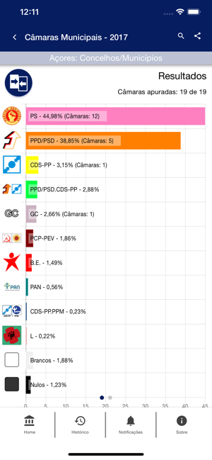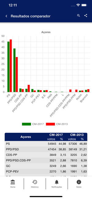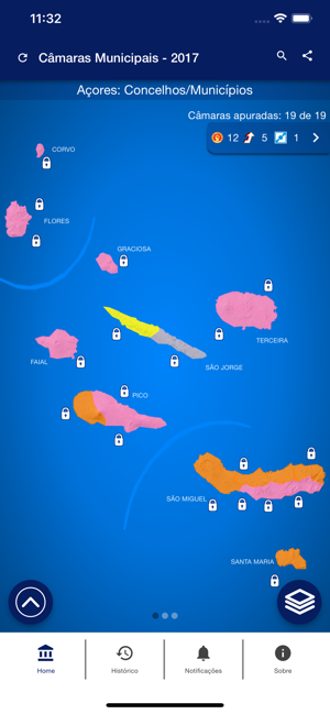 Mantenha-se informado sobre os resultados eleitorais na Região Autónoma dos Açores, aos níveis do arquipélago, de ilha, de concelho e de freguesia, apresentados em gráficos e mapas geográficos.