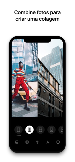 » Seja criativo com molduras de colagem, sobreposições e planos de fundo.