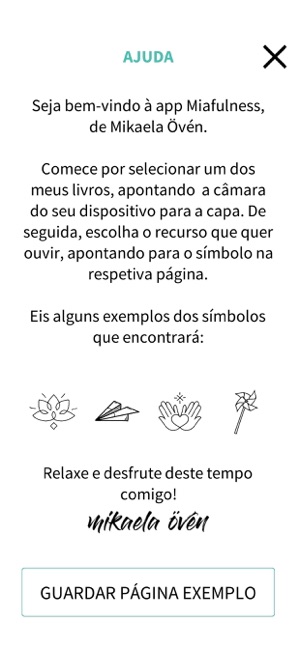 Aponte a câmara do seu smartphone ou tablet para a capa do livro e em seguida para cada um dos símbolos integrados nas páginas, para aceder às orientações da autora nas seguintes meditações:
