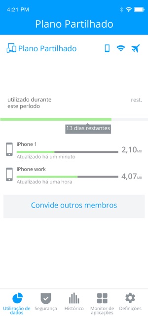 • Histórico: verifique o histórico de consumo para se certificar de que tem o plano de dados móveis certo para si