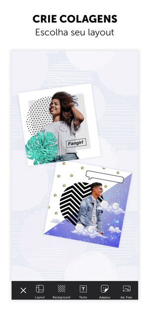 O criador de colagem do PicsArt oferece centenas de modelos gratuitos e a comunidade do PicsArt cria milhares de novas imagens todos os dias que podem ser usadas como fundos e stories.