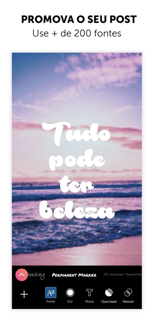 Com milhares de recursos impressionantes, o PicsArt inclui ferramentas para criar recortes, cortar, esticar, clonar, apagar o fundo, adicionar texto & ajustar curvas. Tem uma biblioteca completa de filtros artísticos (incluindo HDR), molduras, fundos, bordas, balões de texto e muito mais. Todas as ferramentas têm um modo de pincel ajustável e podem ser aplicados a uma parte seletiva da sua foto para que fique perfeita. O PicsArt fornece centenas de fontes para adicionar texto nas imagens e criar memes.
