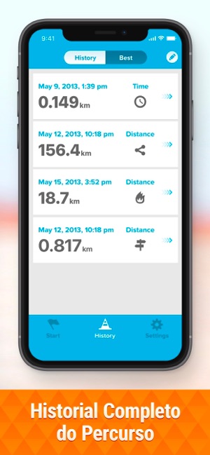 Histórico completo, incluindo estatísticas de passeio, organizados por data, estarão disponíveis para você dentro do aplicativo. Verifique, compare e melhore!