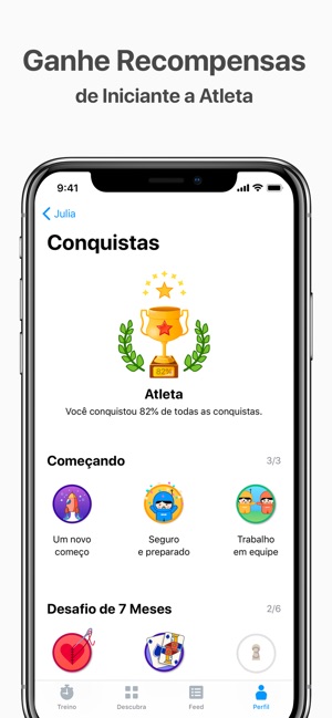 • Colecione conquistas, desde iniciante até atleta, conforme varia de rotina