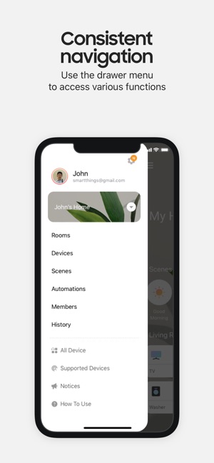 With SmartThings, you can connect and control multiple devices quicker and easier. No matter where you are, you can monitor and control smart devices, home appliances (refrigerator, wine cellar, washer, dryer, oven range, dishwasher, cooktop, robot vacuum, air conditioner, air purifier and etc.), TVs, and speakers registered on the server.