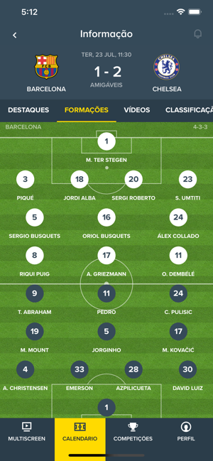 - Outras alterações incluem melhorias de usabilidade à aplicação, tais como o acesso mais fácil ao calendário das suas equipas favoritas através do seu Perfil, a introdução de ações ao clicar nas secções principais para ir para o topo dos ecrãs, acesso rápido aos canais Match Player, entre outras;