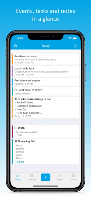 O Planejador de tempo é projetado para as pessoas que estão procurando por um calendário e planejador móvel que gerencie um cronograma da maneira mais simples e organizada. Diga adeus aos outros calendários e agende os aplicativos do planejador, porque combinamos eventos, listas de tarefas, listas de compras e anotações em um só lugar. Você só precisa fazer login na mesma conta do iCloud em seus vários dispositivos iOS. Todos os seus itens serão sincronizados automaticamente.