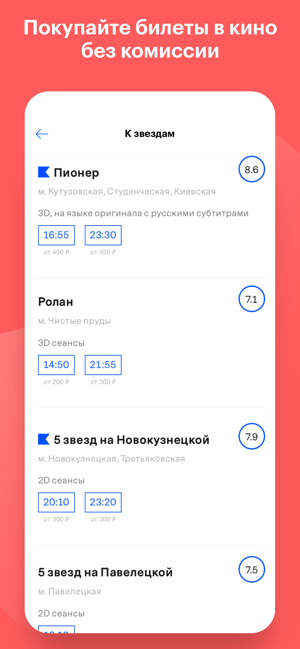 — Расписания фильмов, концертов, клубов, выставок, театров;