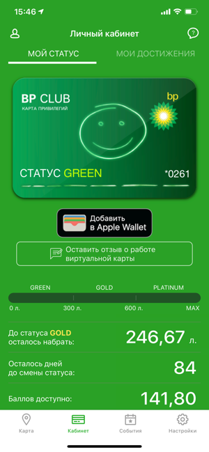Добрый день, просим Вас обратиться в службу поддержки BP CLUB по телефону 8 800 234 7550.