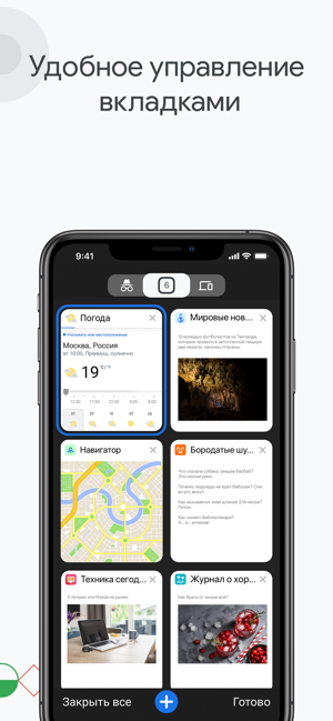 • НЕОГРАНИЧЕННОЕ КОЛИЧЕСТВО ВКЛАДОК. Вы можете открыть сколько угодно вкладок и с легкостью переключаться между ними.
