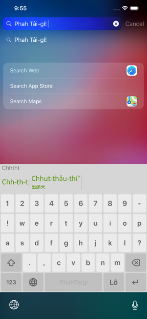 Phah Tâi-gí 台語輸入法:Ē-sái phah 白話字、教育部羅馬字kap漢字。