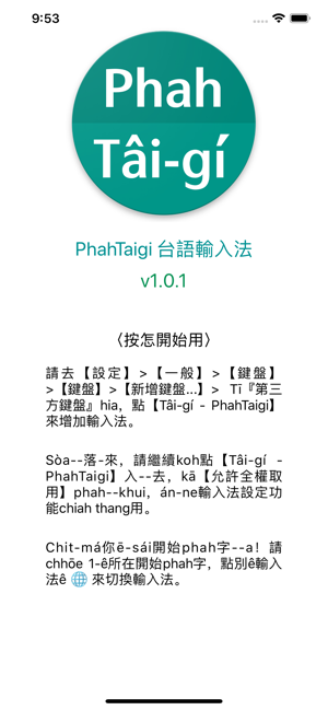 - Tī手機á頂koân ē-tàng真簡單來phah台語字。
