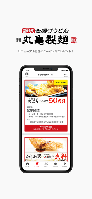丸亀製麺アプリは、お得なクーポンやフェア情報を無料でお届けします。