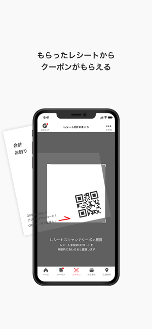 丸亀製麺のレシートに印字されたQRコードを読み込んで、お得なクーポンを獲得することができます。(QRコードは丸亀製麺公式アプリで読み取る必要があります。)
