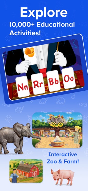 • Thousands of books, videos, puzzles, printable activities, songs, games, and animations