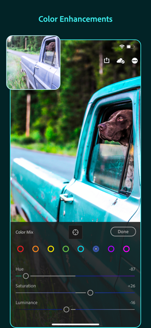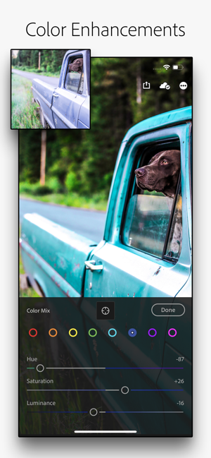• COLOR MIXER: Refine and tweak colors on your photo to make them pop