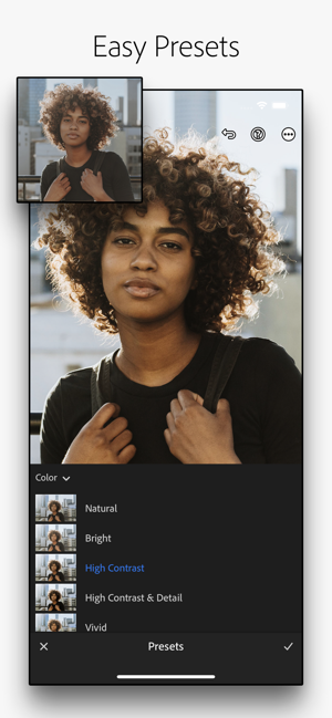 • PROFILES: Use these one-tap miracles to create visually striking changes to the look-and-feel of your photo edits
