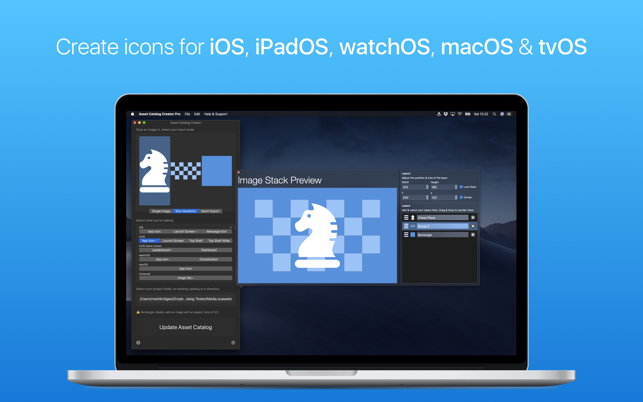 Asset Catalog Creator takes any image and creates a full set of icons, launch screens or pretty much any other type of image that you’ll need to make an app on any of Apple’s platforms. Unlike other icon generators, batch resizers or scripts, these are converted directly into the latest Asset Catalog format; eliminating any additional steps before they’re ready to use.