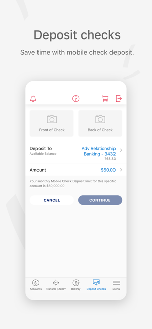• Securely send and receive money with Zelle® using a mobile number or email address¹