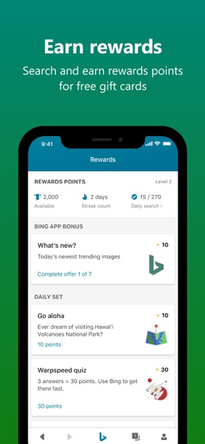 · With Microsoft Rewards, earn points for searching and redeem them for free gift cards from Xbox, Target, Walmart, and many more.