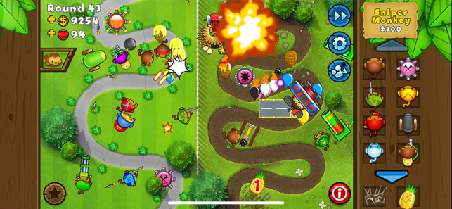This is a very amazing game and super addictive if you’re a strategist it’s fun to come up with all kinds of different ways to be different levels and the many different maps and I also love how you can choose different maps with different difficulties as well and there’s countless combinations of ways to work through this the only things that I hate about this game and many others that I play with are One you can’t speak to your opponents. Number two when you select a map difficulty with the difficulty of the game itself no matter what you pick it send you into some game where anyone has clicked one of the things that you have for instants I play on expert maps and impoppable, sometimes I also add in advanced maps but yet it will put me into a game playing on impoppable with an easy map this will decrease the reward from say $1200 to $360 monkey money.. and it’s just way too easy at that.. Now the only other thing that we have discussed between me and my friends that play this is it would be nice to be able to speed it up even more than the one time speed because these matches on impoppable go on for a long time so speeding it times 3 when ur fully set to win by round say 50 u won’t have to wait till round 85 as the rounds get longer each round..