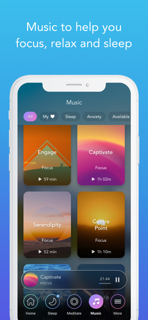 * Music: Exclusive music engineered to help you focus, relax or sleep