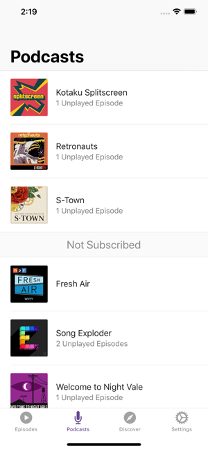 - Added Siri shortcuts for showing Unplayed Episodes, showing Podcasts, and showing Discover