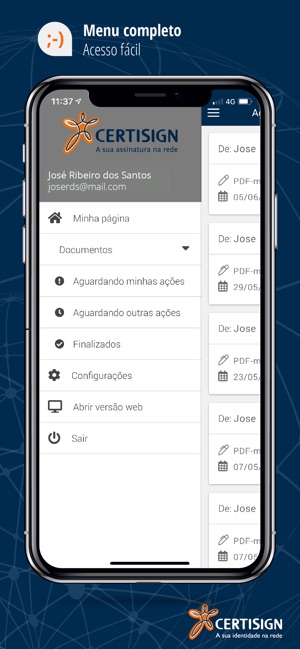 Assine documentos com apenas alguns cliques, no lugar e no momento mais oportuno para você.