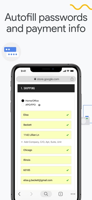 • AUTOFILL FORMS & PASSWORDS - Remembering p4$$w0rd$ is a thing of the past. Chrome can store your address and payment details, so you can fill out forms with just one click.