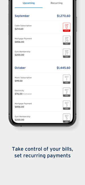 Bill management*: View and manage your bills and recurring payments in one place