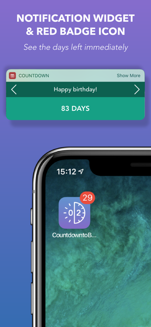 Use the red badge icon of the app to show how many days are left for the event you want. The red badge icon updates automatically every day!