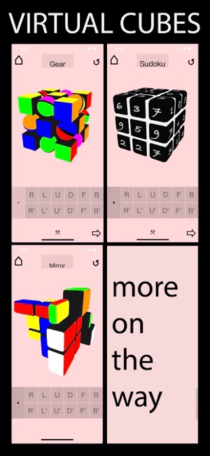 Scramble a virtual cube with playgrounds (2x, 3x, 4x, 5x, Gear, Sudoku, and Mirror)