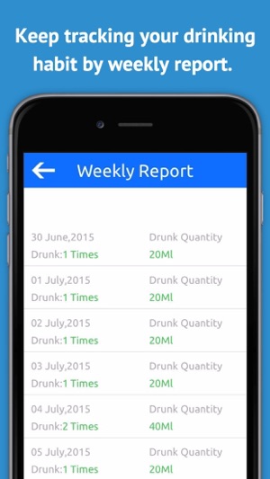 - Reflect your drinking habit by weekly report.